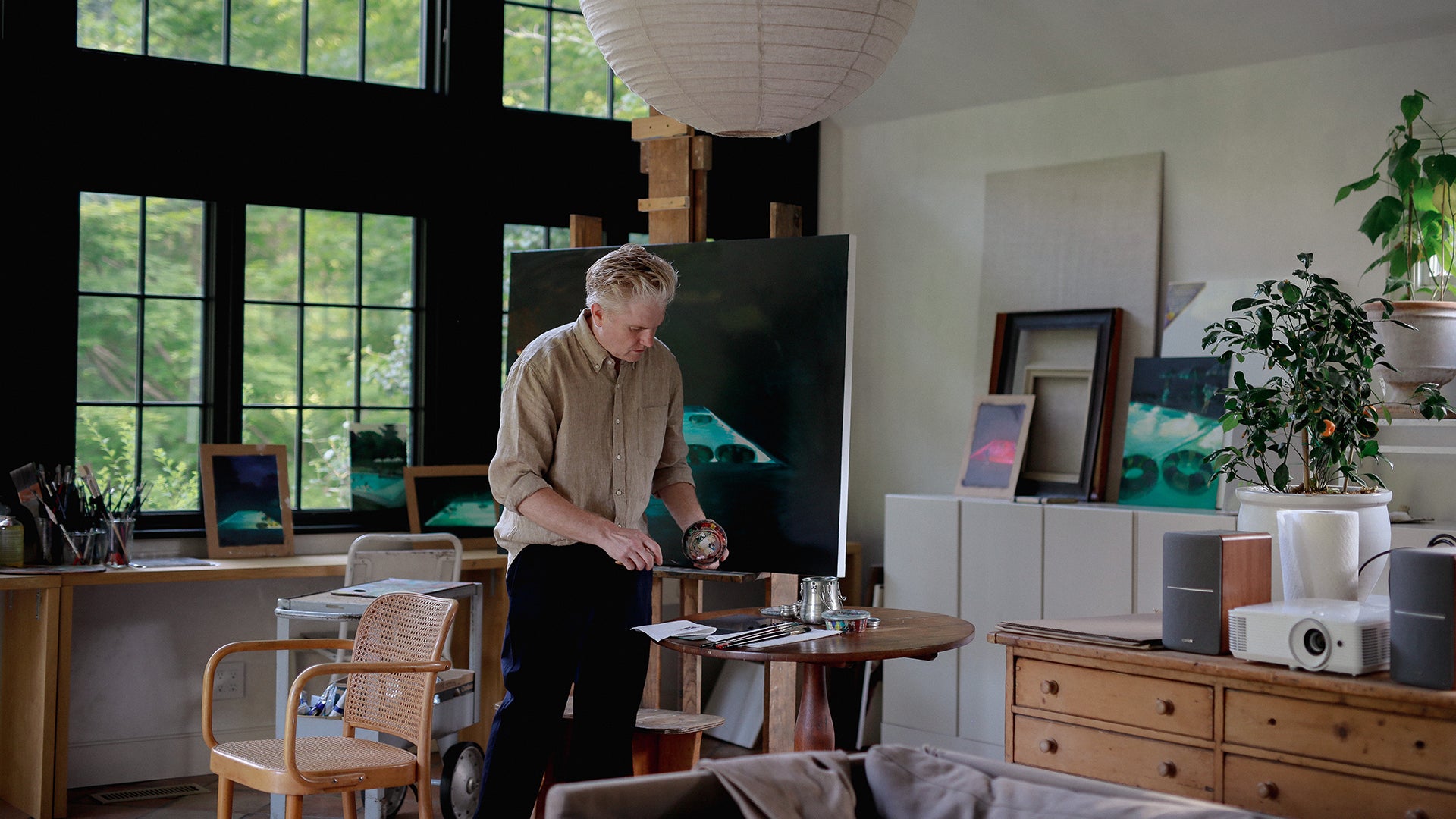 I've been thinking about how light and time shape who we are, and I'm proud to present this Day and Night series. In these new works, swimming and swimming pools show how light reshapes time, memory, and atmosphere. Under the sun, the water shimmers, revealing each movement with striking clarity. Time slows down or stops, and a scene is recorded. At night, the same water becomes less defined, time stretches, and becomes flexible. Everybody could be anybody, and every pool looks the same. At different hours, I'm exploring how time and context alter perception. Our external world versus our internal.